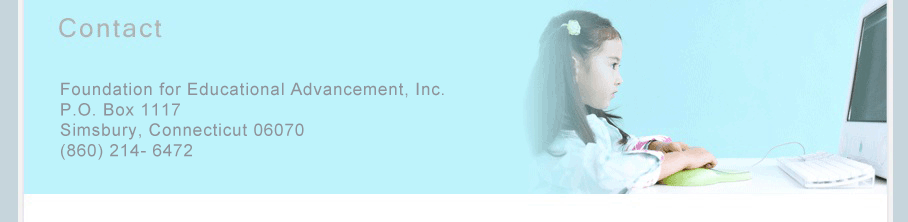 Foundation for Educational Advancement, Inc. P.O. Box 1117 Simsbury, Connecticut 06070 (860) 214- 6472 Dr. Vivian Cross, Executive Director Elizabeth Nkonoki-Ward, CEU Coordinator Tina Mazon, Technical Assistance / Program Officer Dr. William Hunter, Advisory Board Member Dr. Julia Grenier, Advisory Board Member Janette Parker, Advisory Board Member